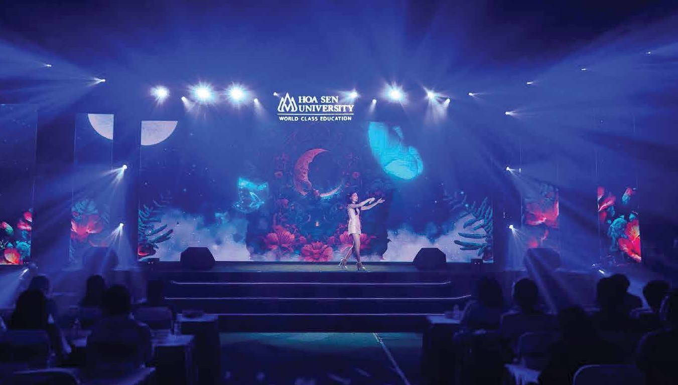 - Sáng tạo & Thiết kế: phát triển kịch bản chương trình, key visual, sân khấu, âm thanh – ánh sáng – hiệu ứng mapping hiện đại.
