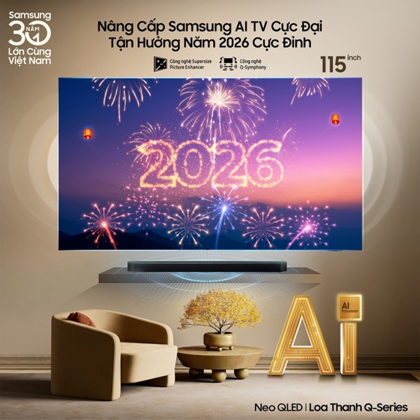 Xuyên suốt 30 năm hoạt động tại Việt Nam, Samsung đã đồng hành với người dùng trong nhiều cái Tết, chứng kiến chất lượng cuộc sống thăng hạng từng ngày. Năm nay, với Samsung AI TV và SmartThings, ông lớn Hàn Quốc tiếp tục mang đến “chìa khoá” mở ra trải nghiệm Tết hiện đại thông qua ưu đãi lên đến 26 triệu đồng khi mua TV Samsung, bao gồm tặng loa thanh S700D hoặc loa tranh LS60D, bảo hành 3 năm, trả góp 0% cùng gói ứng dụng giải trí. Đây hứa hẹn sẽ là bước ngoặt trong trải nghiệm đón Tết của các gia đình Việt, nhất là trong kỷ nguyên AI hiện tại.