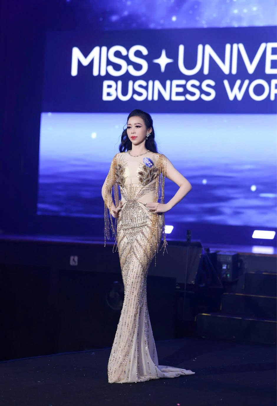 Sở hữu vóc dáng cân đối, đường nét thanh thoát cùng thần thái tự tin trên sân khấu, Nguyễn Ngân khiến khán phòng như bùng nổ trong mỗi lần xuất hiện. Từng bước catwalk uyển chuyển, từng nụ cười rạng rỡ đều thể hiện nỗ lực rèn luyện nghiêm túc và tinh thần chinh phục đỉnh cao cái đẹp. Đặc biệt, ở phần thi trình diễn trang phục dạ hội và áo dài, Nguyễn Ngân liên tục ghi điểm tuyệt đối nhờ khả năng làm chủ ánh nhìn và truyền tải hình ảnh nữ lãnh đạo thanh lịch, mạnh mẽ mà vẫn cuốn hút.